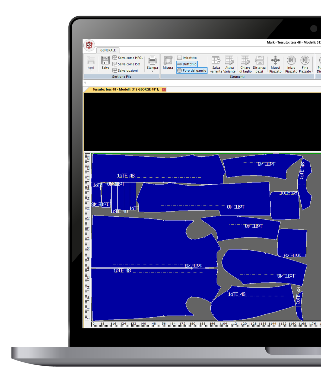 Il modulo di piazzamento di Pro2CAD unisce semplicità operativa, precisione geometrica ed efficienza produttiva. Consente di ottimizzare in pochi minuti il consumo di tessuto, riducendo gli sprechi e migliorando la resa di ogni taglio. Ogni piazzamento può generare fino a 10 varianti per tessuto o modello, adattandosi alle diverse necessità di produzione o di prototipazione.